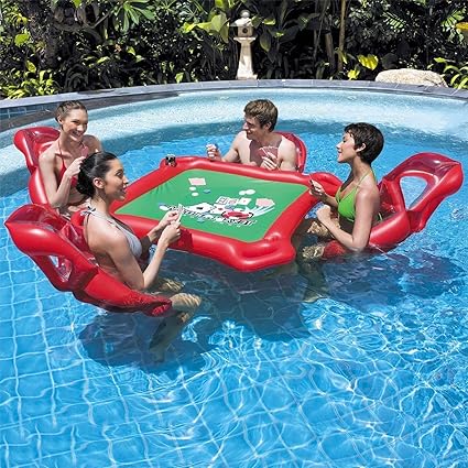 Mrwj Ensemble De Table De Jeu Gonflable A Eau Avec Matelas A Air Avec 4 Chaises Ideal Pour Piscine Jouet Jeux De Poker Party Pool Adultes Rouge 53 4 X 53 2 Pouces Amazon Fr Cuisine